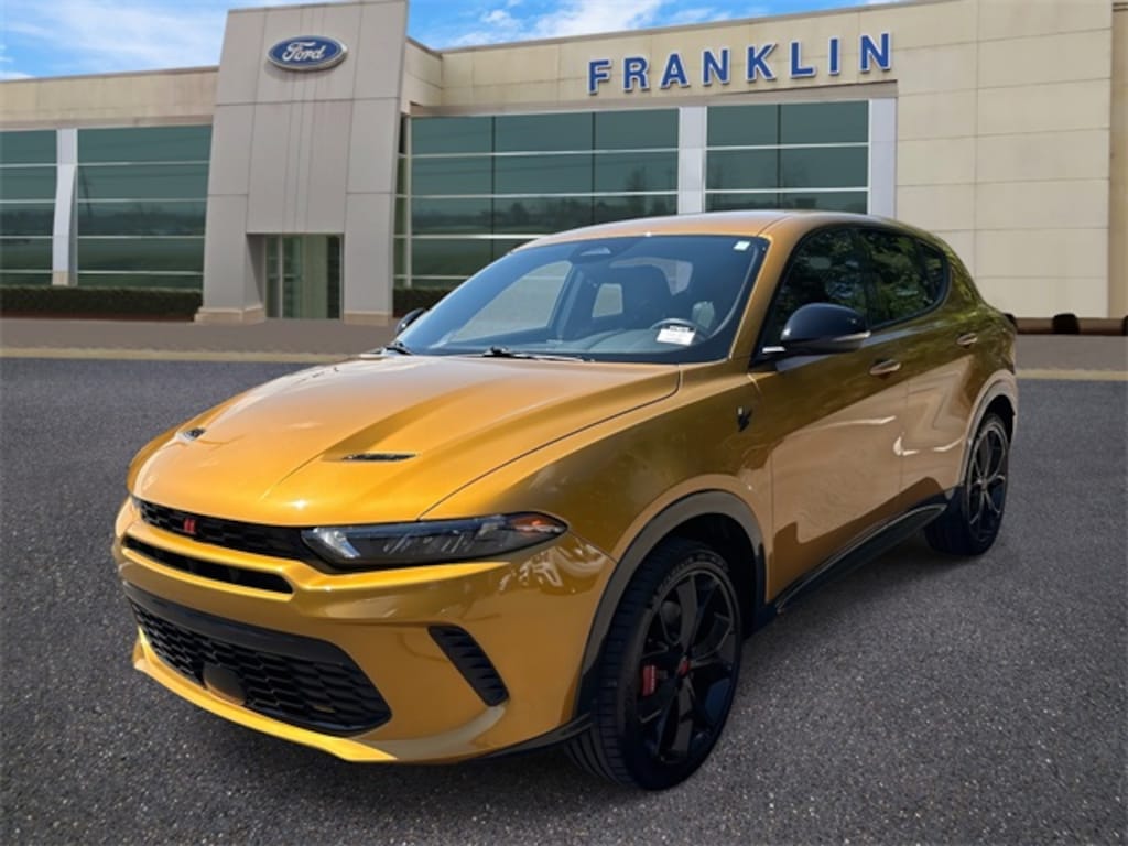 THIS VEHICLE INCLUDES THE FOLLOWING FEATURES AND OPTIONS: Quick Order Package 28B (DISC), R/T Blacktop + Track Pack Bundle (Alcantara Seats w/Red Accents, Bright Pedals, Dark Hornet Badge, Dark R/T Badge, Dual Mode Suspension, Gloss Black Painted Day Light Opening, Gloss Black Painted Mirror Caps, Red Brake Calipers, Sporty Leather Steering Wheel, Steel Door Sills, Wheels: 20" x 8" Abyss Finish Aluminum, Power 4-Way Driver Lumbar Adjust, Power 4-Way Passenger Lumbar Adjust, Power Adjust 8-Way Driver Seat, and Power Adjust 8-Way Front Passenger Seat), Hornet R/T, Ford Blue Advantage: Blue Certified Certified, 4D Sport Utility, 1.3L I4, 6-Speed Automatic, AWD, Acapulco Gold, Black Artificial Leather, Brake assist, Delay-off headlights, Driver Seat Memory, Electronic Stability Control, Fully automatic headlights, Lane Departure Warning System, Memory seat, ParkView Rear Back-Up Camera, 10.25" Touchscreen Display, 4-Wheel Disc Brakes, 6 Speakers, ABS brakes, Air Conditioning, Alloy wheels, AM/FM radio: SiriusXM, Anti-whiplash front head restraints, Apple CarPlay, Apple CarPlay/Android Auto, Auto High-beam Headlights, Auto-dimming Rear-View mirror, Bumpers: body-color, Cloth/Leatherette Seats, Compass, Connectivity - US/Canada, Disassociated Touchscreen Display, Driver door bin, Driver vanity mirror, Dual front impact airbags, Dual front side impact airbags, Emergency communication system: Dodge Connect, Four wheel independent suspension, Front Bucket Seats, Front Center Armrest w/Storage, Front dual zone A/C, Front reading lights, Garage door transmitter, Google Android Auto, GPS Antenna Input, Heated door mirrors, Heated front seats, Heated steering wheel, Illuminated entry, Knee airbag, Leather Shift Knob, Leather steering wheel, Low tire pressure warning, Manufacturer's Statement of Origin, Normal Duty Suspension, Occupant sensing airbag, Outside temperature display, Overhead airbag, Overhead console, Panic alarm, Passenger door bin, Passenger vanity mirror, Power door mirrors, Power driver seat, Power steering, Power windows, Radio: Uconnect 5 w/10.25" Display, Rain sensing wipers, Rear anti-roll bar, Rear seat center armrest, Rear window defroster, Rear window wiper, Remote keyless entry, Security system, Speed control, Speed-sensing steering, Split folding rear seat, Spoiler, Tachometer, TBD Axle Ratio, Telescoping steering wheel, Tilt steering wheel, Traction control, Trip computer, Turn signal indicator mirrors, Variably intermittent wipers, and Wheels: 18" x 7.5" Graphite Aluminum.