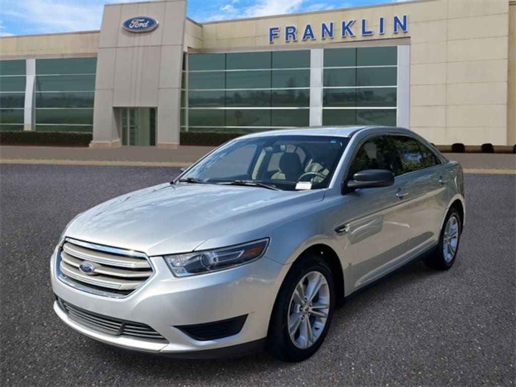 THIS VEHICLE INCLUDES THE FOLLOWING FEATURES AND OPTIONS: Equipment Group 100A, Taurus SE, Ford Blue Advantage: Blue Certified Certified, 4D Sedan, 3.5L 6-Cylinder SMPI Flex Fuel DOHC, 6-Speed Automatic with Select-Shift, FWD, Ingot Silver Metallic, Dune w/Cloth Front Bucket Seats, Electronic Stability Control, Exterior Parking Camera Rear, Fully automatic headlights, Knee airbag, Overhead airbag, Power steering, Rear anti-roll bar, 4-Wheel Disc Brakes, 6 Speakers, ABS brakes, Air Conditioning, Alloy wheels, AM/FM radio, Brake assist, Bumpers: body-color, CD player, Cloth Front Bucket Seats, Delay-off headlights, Driver door bin, Driver vanity mirror, Dual front impact airbags, Dual front side impact airbags, Emergency communication system: 911 Assist, Four wheel independent suspension, Front anti-roll bar, Front Bucket Seats, Front Center Armrest, Front License Plate Bracket, Front reading lights, Illuminated entry, Low tire pressure warning, Occupant sensing airbag, Overhead console, Panic alarm, Passenger door bin, Passenger vanity mirror, Power door mirrors, Power driver seat, Power passenger seat, Power windows, Radio data system, Radio: AM/FM Stereo/Single-CD/MP3 Capable, Rear reading lights, Rear seat center armrest, Rear window defroster, Remote keyless entry, Speed control, Speed-sensing steering, Speed-Sensitive Wipers, Split folding rear seat, Steering wheel mounted audio controls, SYNC Communications & Entertainment System, Tachometer, Telescoping steering wheel, Tilt steering wheel, Traction control, Trip computer, Variably intermittent wipers, and Wheels: 18" Sparkle Silver-Painted Aluminum.