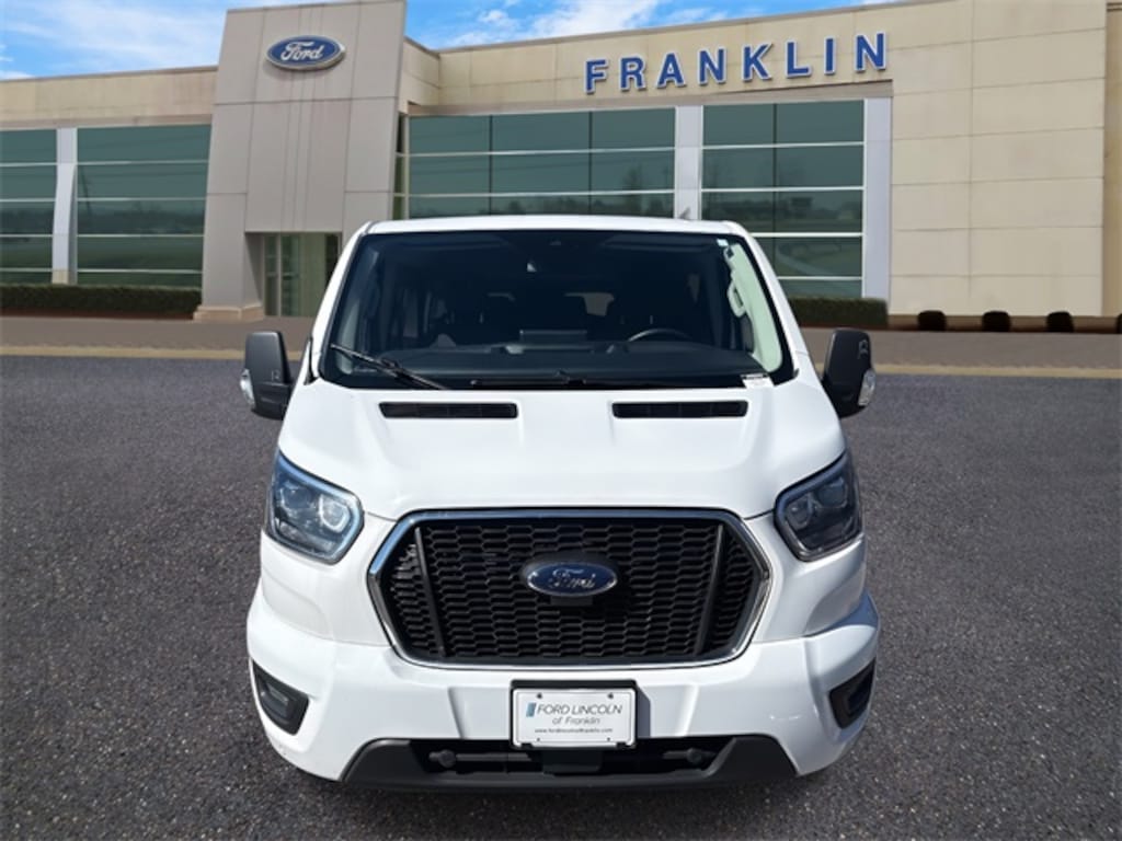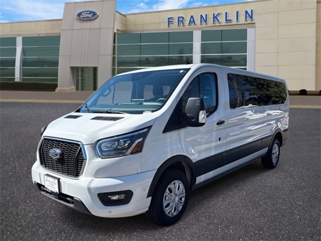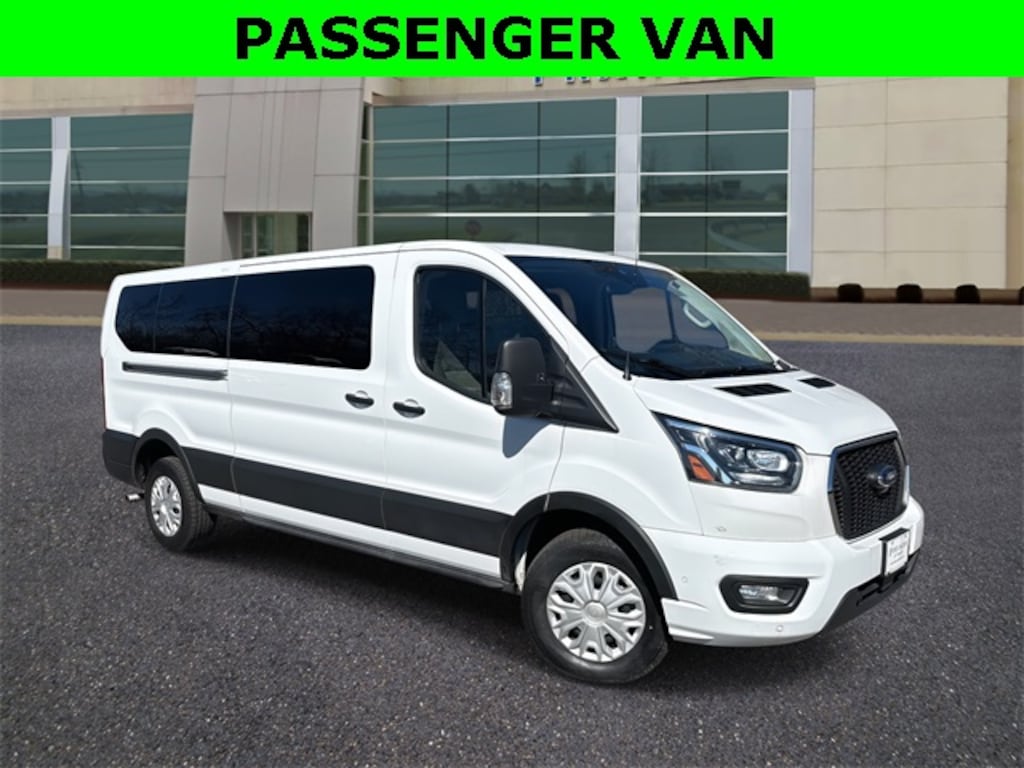 THIS VEHICLE INCLUDES THE FOLLOWING FEATURES AND OPTIONS: Transit-350 XLT, Ford Blue Advantage: Blue Certified Certified, Passenger Van, EcoBoost 3.5L V6 GTDi DOHC 24V Twin Turbocharged, 10-Speed Automatic with Overdrive, RWD, Oxford White, Dark Palazzo Gray w/Cloth Front Bucket Seats, 3.73 Axle Ratio, 3rd row seats: split-bench, 4-Wheel Disc Brakes, 4th-Row Bench Seat, 8 Speakers, ABS brakes, Air Conditioning, AM/FM radio, Auto High-beam Headlights, Auto Start-Stop Delete, Brake assist, Cloth Front Bucket Seats, Delay-off headlights, Driver door bin, Driver vanity mirror, Driver's Seat Mounted Armrest, Dual front impact airbags, Dual front side impact airbags, Ebony Cloth Bucket Seats, Electronic Air Temperature Control, Electronic Stability Control, Front anti-roll bar, Front Bucket Seats, Front Fog Lamps, Front License Plate Bracket, Front reading lights, Front Sensing System, Front wheel independent suspension, Fully automatic headlights, Illuminated entry, Large Center Console, Low tire pressure warning, Occupant sensing airbag, Overhead airbag, Panic alarm, Passenger door bin, Passenger seat mounted armrest, Passenger vanity mirror, Power door mirrors, Power steering, Power windows, Privacy Glass, Radio: AM/FM Stereo w/SYNC 4 & Nav, Radio: AM/FM Stereo w/SYNC 4/SiriusXM w/360L/Nav, Rain sensing wipers, Rear air conditioning, Rear window defroster, Remote keyless entry, Reverse Sensing System, Side Sensing System, Steering wheel mounted audio controls, Tachometer, Telescoping steering wheel, Tilt steering wheel, Traction control, Variably intermittent wipers, and Wheels: 16" Steel w/Full Silver Cover.