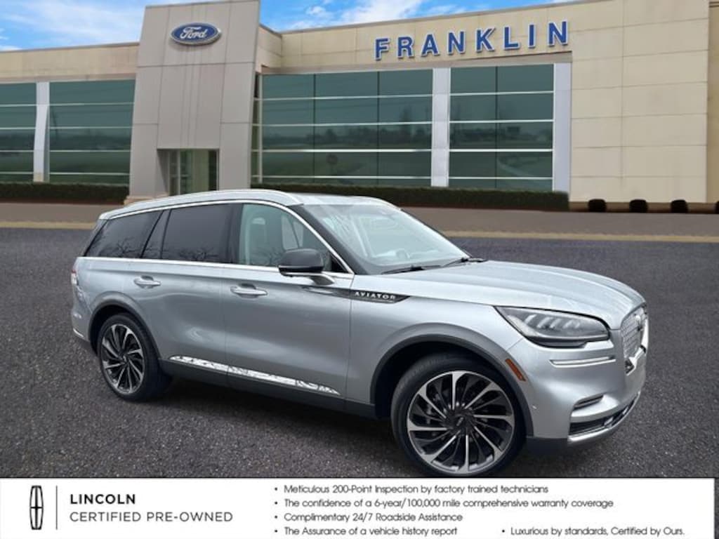 Certified. CARFAX One-Owner. 2023 Lincoln Aviator Reserve Silver Radiance Metallic Clearcoat RWD 10-Speed Automatic 3.0L V6