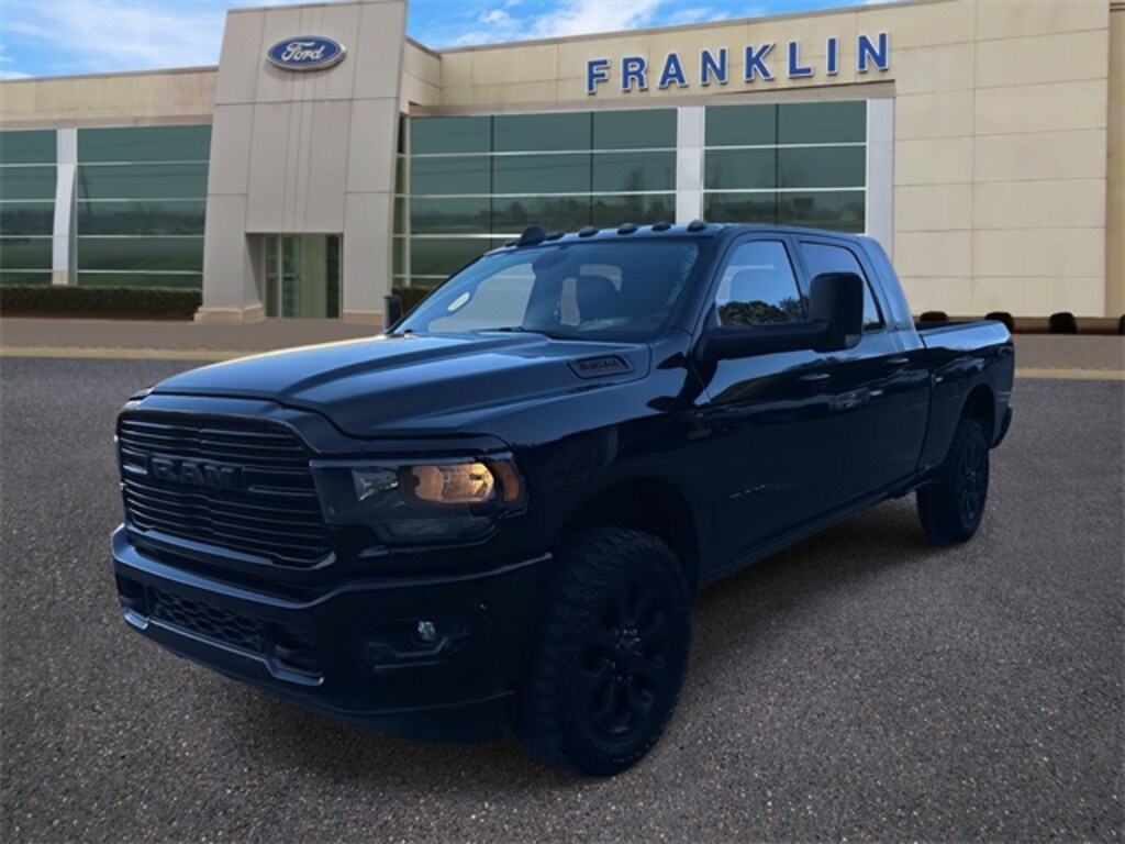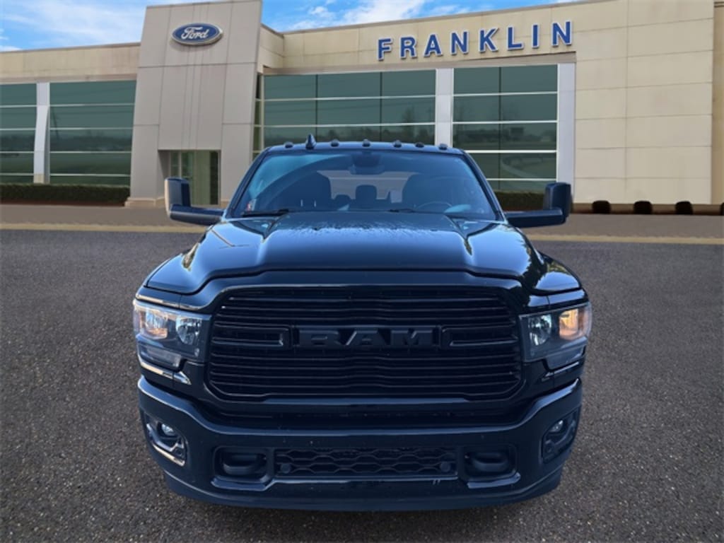 THIS VEHICLE INCLUDES THE FOLLOWING FEATURES AND OPTIONS: Big Horn Level 1 Equipment Group (1-Year SiriusXM Radio Service, 2 Way Rear Headrest Seat, 4 Way Front Headrests, 40/20/40 Split Bench Seat, 8.4" Touchscreen Display, Apple CarPlay, Auto-Dimming Rear-View Mirror, Center Hub, Center Stack Storage Drawer, Dual Glove Boxes, Foam Bottle Insert (Door Trim Panel), Footwell Courtesy Lamp, For More Info, Call 800-643-2112, Front Armrest w/Cupholders, Front Center Seat Cushion Storage, Front Fog Lamps, Front Seat Back Map Pockets, Glove Box Lamp, Google Android Auto, Integrated Center Stack Radio, Leather Wrapped Steering Wheel, Locking Lower Glove Box, Manual Adjust 4-Way Front Passenger Seat, Power 2-Way Driver Lumbar Adjust, Power Adjust 8-Way Driver Seat, Power Adjustable Folding Heated Black Tow Mirrors, Power Adjustable Pedals, Power-Folding Mirrors, Premium Cloth 40/20/40 Bench Seat, Radio: Uconnect 4 w/8.4" Display, Rear 60/40 Folding Seat, Rear Dome w/On/Off Switch Lamp, Steering Wheel Mounted Audio Controls, Sun Visors w/Illuminated Vanity Mirrors, Universal Garage Door Opener, and Wheels: 18" x 8.0" Polished Aluminum), Black Appearance Package (Black Exterior Truck Badging, Black Headlamp Bezels, Black Interior Accents, Black Ram Head Tailgate Badge, Black Tail Lamp Bezels, Black Wheel Center Hub, Body Color Door Handles, Body Color Grille Surround, Gloss Black Grille Billets/Accents, Painted Front Bumper, Painted Rear Bumper, and Wheels: 20" x 8.0" Black Painted Aluminum), Cold Weather Group (Engine Block Heater and Winter Front Grille Cover), Heated Seats & Wheel Group (Heated Front Seats and Heated Steering Wheel), Heavy Duty Snow Plow Prep Group (220 Amp Alternator), Protection Group, Quick Order Package 2HZ Big Horn, 3500 Big Horn, Ford Blue Advantage: Blue Certified Certified, 4D Mega Cab, Cummins 6.7L I6 Turbodiesel, 6-Speed Automatic, 4WD, Diamond Black Crystal Pearlcoat, Black w/Premium Cloth 40/20/40 Bench Seat or Premium Cloth 40/20/40 Bench Seat or Premium Cloth Bucket Seats, 3.73 Axle Ratio, 4-Wheel Disc Brakes, 5th Wheel/Gooseneck Towing Prep Group, 6 Speakers, 9 Alpine Speakers w/Subwoofer, ABS brakes, Active Noise Control System, Air Conditioning, AM/FM radio, Brake assist, Bumpers: chrome, Clearance Lamps, Cloth 40/20/40 Bench Seat, Compass, Delay-off headlights, Driver door bin, Dual front impact airbags, Dual front side impact airbags, Electronic Stability Control, Electronically Controlled Throttle, Front anti-roll bar, Front Bumper Sight Shields, Front Center Armrest w/Storage, Front reading lights, Fully automatic headlights, GPS Antenna Input, Heated door mirrors, Illuminated entry, Integrated Voice Command w/Bluetooth, LED Bed Lighting, Low tire pressure warning, Occupant sensing airbag, Outside temperature display, Overhead airbag, Overhead console, Panic alarm, ParkSense Front/Rear Park Assist System, ParkView Rear Back-Up Camera, Passenger door bin, Passenger vanity mirror, Power door mirrors, Power steering, Power windows, Radio data system, Radio: Uconnect 3 w/5" Display, Radio: Uconnect 4C Nav w/8.4" Display, Rear seat center armrest, Rear step bumper, Remote keyless entry, Selectable Tire Fill Alert (DISC), Speed control, Split folding rear seat, Tachometer, Tilt steering wheel, Tip Start, Traction control, Trip computer, Turn signal indicator mirrors, USB Host Flip, Variably intermittent wipers, Voltmeter, and Wheels: 18" x 8.0" Steel Chrome Clad.