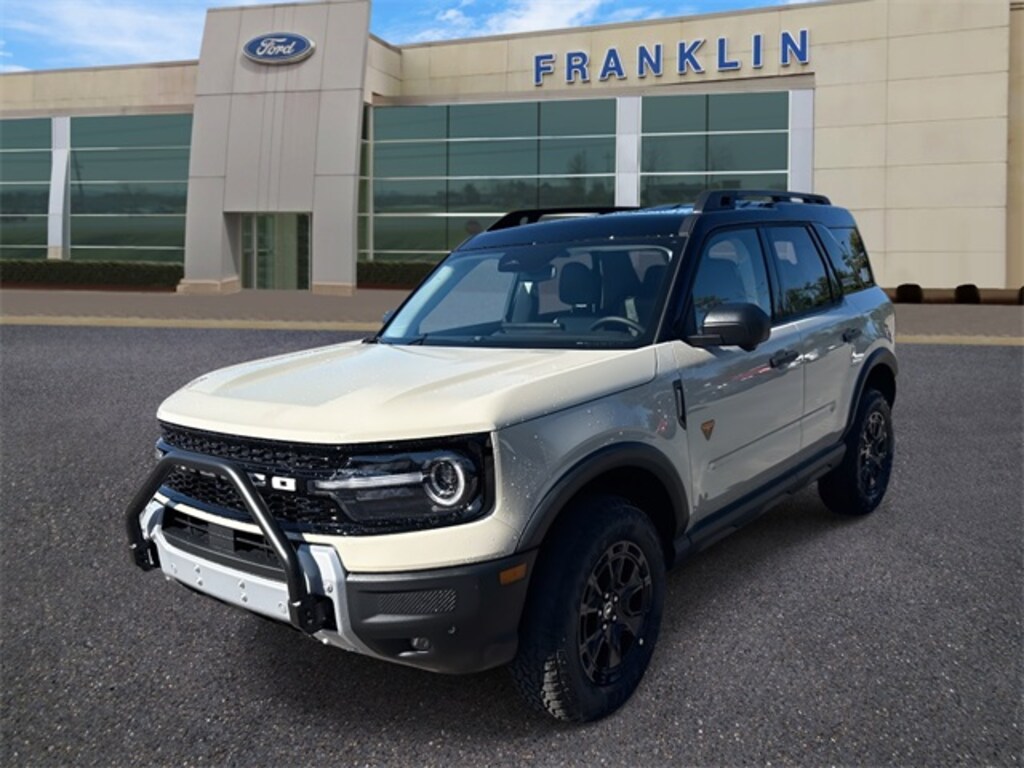 Price includes: $1500 - Retail Bonus Cash 2025 Ford Bronco Sport Badlands Desert Sand 4WD 8-Speed Automatic EcoBoost 2.0L I4 GTDi DOHC Turbocharged VCT **LIFE TIME POWERTRAIN WARRANTY**, Bronco Sport Badlands, 4D Sport Utility, EcoBoost 2.0L I4 GTDi DOHC Turbocharged VCT, 8-Speed Automatic, 4WD, Desert Sand, Dark Space Gray w/Leather Trimmed Front Bucket Seats, 850W Engine Cooling Fan, Auxiliary Switches & Wiring, Brush Guard, Equipment Group 400A, Fender Tie Downs, High Clearance Fender Flares, HOSS 3.0 Off-Road Suspension, Rear Black Bumpers, Recovery Hooks, Sasquatch Badlands Package, Wheels: 17" Ebony Black-Painted Aluminum.