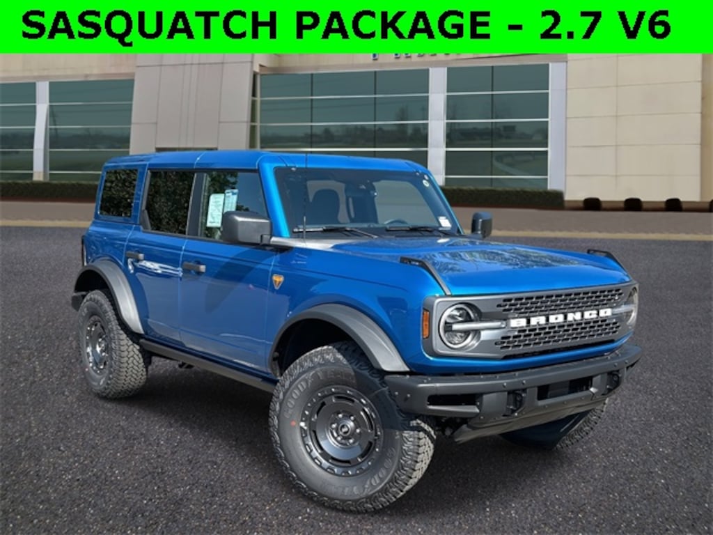 Price includes: $2000 - Retail Bonus Cash 2025 Ford Bronco Badlands Velocity Blue Metallic 4WD 10-Speed Automatic 2.7L EcoBoost V6 **LIFE TIME POWERTRAIN WARRANTY**, Bronco Badlands, 4D Sport Utility, 2.7L EcoBoost V6, 10-Speed Automatic, 4WD, Velocity Blue Metallic, Black Onyx w/Marine Grade Vinyl Bucket Seats, 4.7 Final Drive Ratio, Equipment Group 332A Mid Package, High Clearance Fender Flares, High Clearance Suspension, Position-Sensitive Bilstein Shock Absorbers, Sasquatch Package.