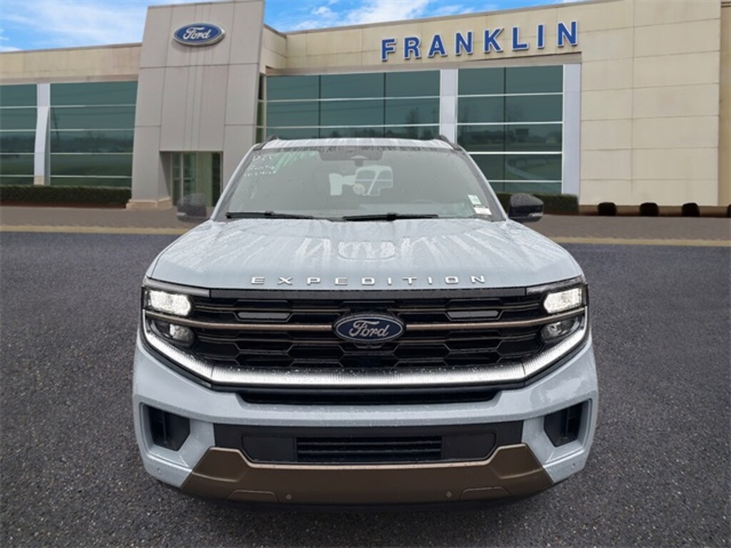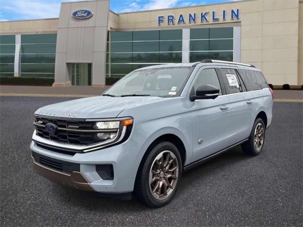 THIS VEHICLE INCLUDES THE FOLLOWING FEATURES AND OPTIONS: Equipment Group 400A Standard Package (BlueCruise Equipped (1-Year Plan)), Expedition Max King Ranch, 4D Sport Utility, EcoBoost 3.5L V6 GTDi DOHC 24V Twin Turbocharged, 10-Speed Automatic, 4WD, Glacier Gray Metallic TriCoat, Mesa w/Heated/Vent Prem Del Rio Lthr Fr Captain's Chairs, Navigation System, 22 Speakers, 3.73 Axle Ratio, 3rd row seats: split-bench, 4-Wheel Disc Brakes, ABS brakes, Adaptive suspension, Adjustable pedals, Air Conditioning, Alloy wheels, AM/FM radio: SiriusXM with 360L, Apple CarPlay/Android Auto, Auto High-beam Headlights, Auto-dimming door mirrors, Auto-dimming Rear-View mirror, Automatic temperature control, Brake assist, Bumpers: body-color, Compass, Delay-off headlights, Driver door bin, Driver vanity mirror, Dual front impact airbags, Dual front side impact airbags, Electronic Stability Control, Emergency communication system: 911 Assist, Exterior Parking Camera Rear, Floor Liners, Front & Second Rows, Four wheel independent suspension, Front anti-roll bar, Front Bucket Seats, Front Center Armrest, Front dual zone A/C, Front License Plate Bracket, Front reading lights, Fully automatic headlights, Garage door transmitter, Genuine wood dashboard insert, Genuine wood door panel insert, Heated door mirrors, Heated front seats, Heated rear seats, Heated steering wheel, Heated/Vent Prem Del Rio Lthr Fr Captain's Chairs, Illuminated entry, Leather steering wheel, Low tire pressure warning, Memory seat, Occupant sensing airbag, Outside temperature display, Overhead airbag, Overhead console, Panic alarm, Passenger door bin, Passenger vanity mirror, Pedal memory, Power door mirrors, Power driver seat, Power moonroof: Vista Roof, Power passenger seat, Power steering, Power windows, Radio data system, Radio: B&O Unleashed Sound System by Bang & Olufsen, Rain sensing wipers, Rear air conditioning, Rear anti-roll bar, Rear reading lights, Rear window defroster, Rear window wiper, Reclining 3rd row seat, Remote keyless entry, Security system, SiriusXM w/360L, Speed control, Speed-sensing steering, Speed-Sensitive Wipers, Split folding rear seat, Spoiler, Steering wheel memory, Steering wheel mounted audio controls, Tachometer, Telescoping steering wheel, Tilt steering wheel, Traction control, Trip computer, Turn signal indicator mirrors, Variably intermittent wipers, Ventilated front seats, Voltmeter, and Wheels: 22" Sinister Brown w/Diamond Cut Face Alum.