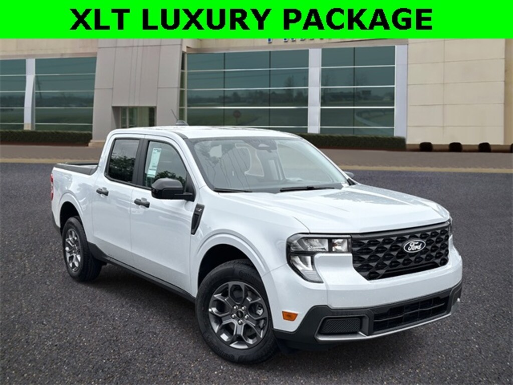 2025 Ford Maverick XLT Space White Metallic FWD CVT 2.5L I-4 Hybrid Maverick XLT, 4D Crew Cab, 2.5L I-4 Hybrid, CVT, FWD, Space White Metallic, Navy Pier/Aspen Gray w/Unique Cloth Front Bucket Seats, 400W Inverter w/USB Console Rear, Auto High Beams, BLIS w/Cross-Traffic Alert, Cross Traffic Brake Assist, Equipment Group 300A, Evasive Steering Assist, Ford Co-Pilot360 1.0, Heated Mirror w/Painted Black Skull Caps, Heated Seats, Intersection Assist, Lane-Keeping System, LED Box Lighting, Power Glass Manual-Folding Mirrors, Pre-Collision Assist w/Automatic Emergency Braking, Rear Parking Sensors, Rear-View Camera, Remote Start System, Soft Vinyl Wrapped Heated Steering Wheel, XLT Luxury Package.