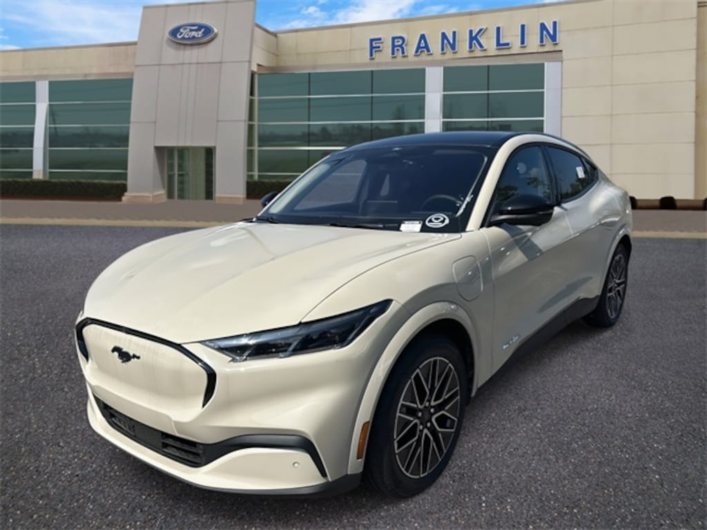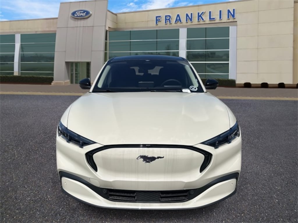 THIS VEHICLE INCLUDES THE FOLLOWING FEATURES AND OPTIONS: Equipment Group 300A Standard Package, Interior Protection Package (1st & 2nd Row Floor Liners w/o Carpet Mats, Cargo Area Cover, and Cargo Floor Liner), Mustang Mach-E Premium, 4D Sport Utility, Dual Electric Motor, Single-Speed Automatic, AWD, Desert Sand, Black Onyx Premium Synthetic, Navigation system: Connected Navigation, 10 Speakers, 4-Wheel Disc Brakes, ABS brakes, Air Conditioning, Alloy wheels, AM/FM radio: SiriusXM with 360L, Apple CarPlay/Android Auto, Auto High-beam Headlights, Auto-dimming Rear-View mirror, Automatic temperature control, Brake assist, Bumpers: body-color, Compass, Delay-off headlights, Driver door bin, Driver vanity mirror, Dual front impact airbags, Dual front side impact airbags, Electronic Stability Control, Emergency communication system: 911 Assist, Exterior Parking Camera Rear, Four wheel independent suspension, Front anti-roll bar, Front Bucket Seats, Front Center Armrest, Front dual zone A/C, Front reading lights, Fully automatic headlights, Garage door transmitter, Heated door mirrors, Heated front seats, Heated steering wheel, Heated/Ventilated Perforated ActiveX Bucket Seats, Illuminated entry, Knee airbag, Low tire pressure warning, Memory seat, Mobile Power Cord (120V/240V), Occupant sensing airbag, Outside temperature display, Overhead airbag, Overhead console, Panic alarm, Panoramic Fixed-Glass Roof, Passenger door bin, Passenger vanity mirror, Power door mirrors, Power driver seat, Power Liftgate, Power passenger seat, Power steering, Power windows, Radio data system, Radio: B&O Sound System by Bang & Olufsen, Rain sensing wipers, Rear anti-roll bar, Rear seat center armrest, Rear side impact airbag, Rear window defroster, Rear window wiper, Remote keyless entry, Security system, SiriusXM w/360L, Speed control, Speed-sensing steering, Speed-Sensitive Wipers, Split folding rear seat, Spoiler, Steering wheel mounted audio controls, SYNC 4A w/Enhanced Voice Recognition, Telescoping steering wheel, Tilt steering wheel, Traction control, Trip computer, Turn signal indicator mirrors, Variably intermittent wipers, Ventilated front seats, and Wheels: 19" Bright Machined-Face Aluminum.