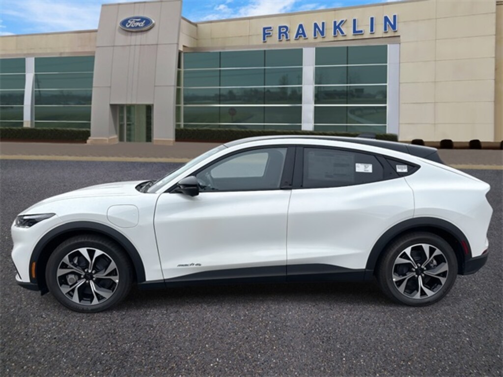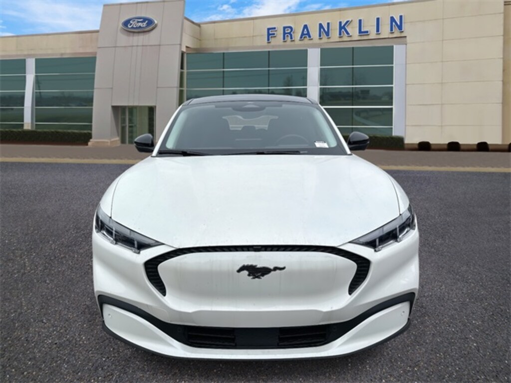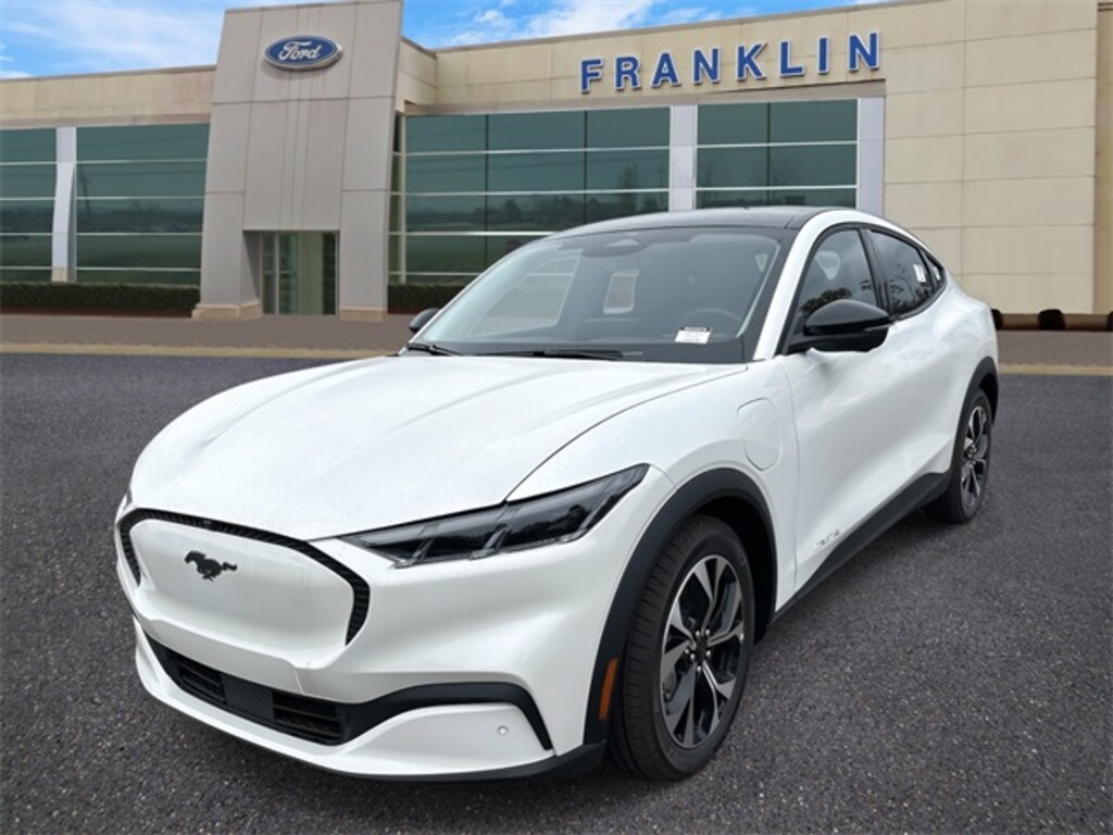THIS VEHICLE INCLUDES THE FOLLOWING FEATURES AND OPTIONS: Equipment Group 100A Standard Package, Mustang Mach-E Select, 4D Sport Utility, Dual Electric Motor, Single-Speed Automatic, AWD, Star White Metallic Tri-Coat, Black Onyx w/ActiveX Bucket Seats, Navigation system: Connected Navigation, 4-Wheel Disc Brakes, 6 Speakers, ABS brakes, ActiveX Bucket Seats, Air Conditioning, Alloy wheels, AM/FM radio: SiriusXM with 360L, AM/FM Stereo, Apple CarPlay/Android Auto, Auto High-beam Headlights, Auto-dimming Rear-View mirror, Automatic temperature control, Brake assist, Bumpers: body-color, Compass, Delay-off headlights, Driver door bin, Driver vanity mirror, Dual front impact airbags, Dual front side impact airbags, Electronic Stability Control, Emergency communication system: 911 Assist, Exterior Bumper Protector, Exterior Parking Camera Rear, Four wheel independent suspension, Front anti-roll bar, Front Bucket Seats, Front Center Armrest, Front dual zone A/C, Front reading lights, Fully automatic headlights, Garage door transmitter, Heated door mirrors, Illuminated entry, Knee airbag, Low tire pressure warning, Mobile Power Cord (120V/240V), Occupant sensing airbag, Outside temperature display, Overhead airbag, Overhead console, Panic alarm, Passenger door bin, Passenger vanity mirror, Power door mirrors, Power driver seat, Power steering, Power windows, Radio data system, Rain sensing wipers, Rear anti-roll bar, Rear seat center armrest, Rear side impact airbag, Rear window defroster, Rear window wiper, Remote keyless entry, Security system, SiriusXM w/360L, Speed control, Speed-sensing steering, Speed-Sensitive Wipers, Split folding rear seat, Spoiler, Steering wheel mounted audio controls, SYNC 4A w/Enhanced Voice Recognition, Telescoping steering wheel, Tilt steering wheel, Traction control, Trip computer, Turn signal indicator mirrors, Variably intermittent wipers, and Wheels: 19" Machined-Face Aluminum.