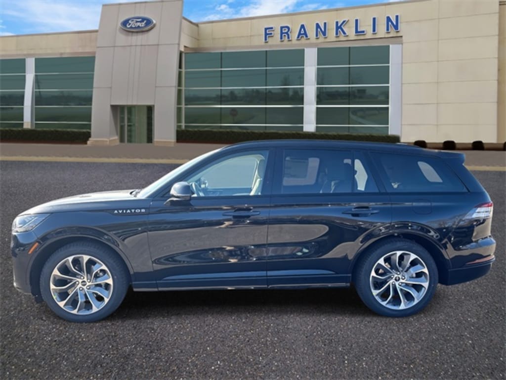 THIS VEHICLE INCLUDES THE FOLLOWING FEATURES AND OPTIONS: Jet Appearance Package (Black Exterior Elements and Body-Color Exterior Elements), Aviator Premiere, 4D Sport Utility, 3.0L V6, 10-Speed Automatic, RWD, Infinite Black Metallic Clearcoat, Medium Light Space Gray w/Lincoln Soft Touch Heated Comfort Seats, Lincoln BlueCruise Equipped (4-Years Included), Navigation System, Power Liftgate, 10 Speakers, 3rd row seats: split-bench, 4-Wheel Disc Brakes, ABS brakes, Adaptive suspension, Air Conditioning, Alloy wheels, AM/FM radio: SiriusXM, Apple CarPlay/Android Auto, Audio memory, Auto High-beam Headlights, Auto-dimming door mirrors, Auto-dimming Rear-View mirror, Automatic temperature control, Brake assist, Bumpers: body-color, Compass, Delay-off headlights, Driver door bin, Driver vanity mirror, Dual front impact airbags, Dual front side impact airbags, Electronic Stability Control, Emergency communication system: 911 Assist, First-Aid Kit, Four wheel independent suspension, Front anti-roll bar, Front Bucket Seats, Front Center Armrest, Front dual zone A/C, Front reading lights, Fully automatic headlights, Garage door transmitter, Heated door mirrors, Heated front seats, Heated steering wheel, HVAC memory, Illuminated entry, Knee airbag, Leather steering wheel, Lincoln Digital Experience, Low tire pressure warning, Memory seat, Occupant sensing airbag, Outside temperature display, Overhead airbag, Overhead console, Panic alarm, Passenger door bin, Passenger vanity mirror, Power door mirrors, Power driver seat, Power passenger seat, Power steering, Power windows, Radio data system, Rain sensing wipers, Rear air conditioning, Rear anti-roll bar, Rear audio controls, Rear reading lights, Rear window defroster, Rear window wiper, Remote keyless entry, Security system, SiriusXM, Speed control, Speed-Sensitive Wipers, Split folding rear seat, Spoiler, Steering wheel mounted A/C controls, Steering wheel mounted audio controls, Tachometer, Telescoping steering wheel, Tilt steering wheel, Traction control, Trip computer, Turn signal indicator mirrors, Variably intermittent wipers, and Wheels: 20" Magnetic Bright-Machined Aluminum.