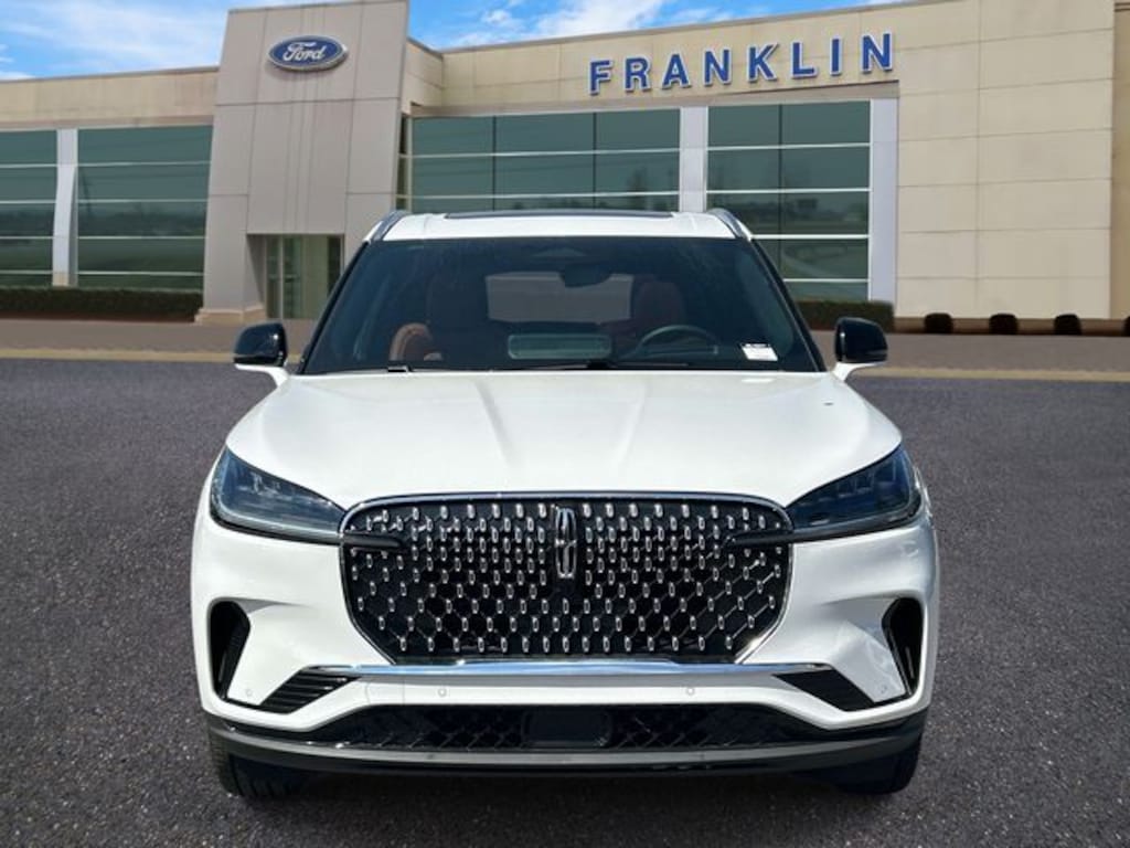 THIS VEHICLE INCLUDES THE FOLLOWING FEATURES AND OPTIONS: Equipment Group 200A Reserve I (Advanced Heads-Up Display, Auto Air Refresh, Auto Heated and Ventilated Driver and Passenger Seats, Lincoln App, Lincoln BlueCruise Equipped (4-Years Included), Lincoln Digital Experience, Premium Leather Front Captain's Chairs, Radio: Revel Audio System with 14 Speakers, SiriusXM, Wheels: 21" Bright-Machined Aluminum with Dark Alloy Painted Pockets, and Wireless Charging Pad), Lincoln Connectivity Package (4-Years), Luxury Package (30-Way Perfect Position Seats with Active Motion, Heated and Ventilated Rear Seats, and Radio: Revel Ultima 3D Audio System with 28 Speakers), Aviator Reserve, 4D Sport Utility, 3.0L V6, 10-Speed Automatic, AWD, Pristine White Metallic Tri-Coat, Onyx &Harvest Bronze Prem Leather, Navigation system: Google Maps, 14 Speakers, 3rd row seats: split-bench, 4-Wheel Disc Brakes, 40/Mini Console/40 Dual Captain's Chairs, ABS brakes, Adaptive suspension, Air Conditioning, All-Weather 1st and 2nd Row Floor Liners, Alloy wheels, AM/FM radio: SiriusXM, Apple CarPlay/Android Auto, Audio memory, Auto High-beam Headlights, Auto-dimming door mirrors, Auto-dimming Rear-View mirror, Automatic temperature control, Brake assist, Bumpers: body-color, Compass, Delay-off headlights, Driver door bin, Driver vanity mirror, Dual front impact airbags, Dual front side impact airbags, Electronic Stability Control, Emergency communication system: 911 Assist, Four wheel independent suspension, Front anti-roll bar, Front Bucket Seats, Front Center Armrest, Front dual zone A/C, Front reading lights, Fully automatic headlights, Garage door transmitter, Genuine wood console insert, Genuine wood dashboard insert, Heads-Up Display, Heated door mirrors, Heated front seats, Heated steering wheel, HVAC memory, Illuminated entry, Knee airbag, Leather steering wheel, Low tire pressure warning, Memory seat, Occupant sensing airbag, Outside temperature display, Overhead airbag, Overhead console, Panic alarm, Passenger door bin, Passenger vanity mirror, Power door mirrors, Power driver seat, Power Liftgate, Power moonroof: Panoramic Vista Roof, Power passenger seat, Power steering, Power windows, Radio data system, Rain sensing wipers, Rear air conditioning, Rear anti-roll bar, Rear audio controls, Rear dual zone A/C, Rear reading lights, Rear window defroster, Rear window wiper, Remote keyless entry, Security system, Speed control, Speed-Sensitive Wipers, Split folding rear seat, Spoiler, Steering wheel memory, Steering wheel mounted A/C controls, Steering wheel mounted audio controls, Tachometer, Telescoping steering wheel, Tilt steering wheel, Traction control, Trip computer, Turn signal indicator mirrors, Variably intermittent wipers, and Ventilated front seats.