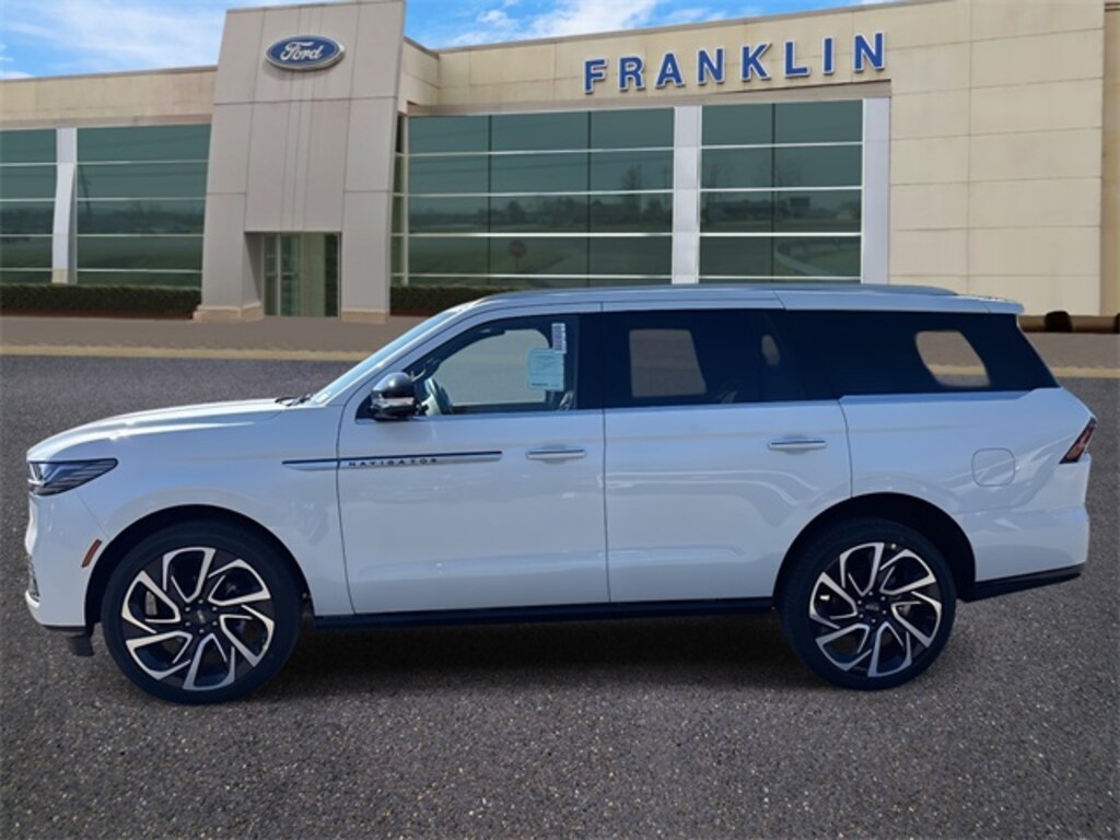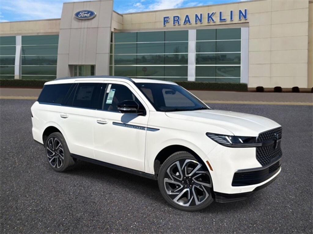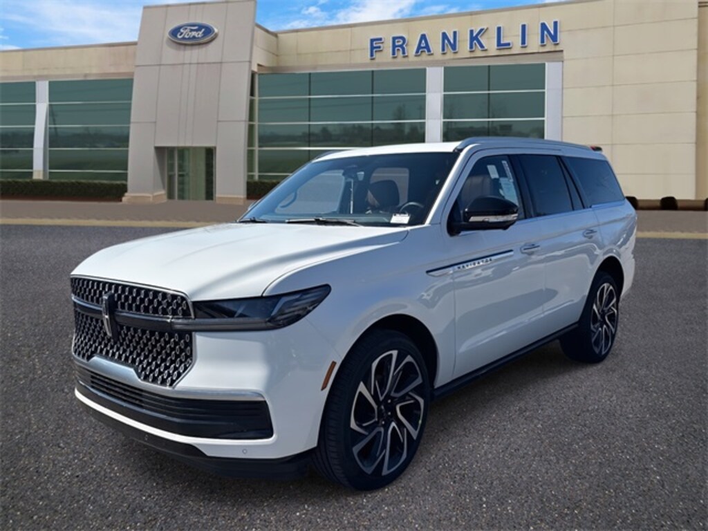 THIS VEHICLE INCLUDES THE FOLLOWING FEATURES AND OPTIONS: Equipment Group 202A Reserve II (Auto Heated/Ventilated Premium Leather Captain's Chairs, BlueCruise Equipped (4-Years Included), Lincoln App, Lincoln Digital Experience, Radio: Revel Ultima 3D Audio System, SiriusXM with 360L (3 Months Trial), and Wheels: 22" Dark Tarnished Aluminum), Heavy-Duty Trailer Tow Package (26mm Engine Radiator and Trailer Brake Controller), Lincoln Connectivity Package (4-Years Included), Lincoln Security Package, Navigator Reserve, 4D Sport Utility, 3.5L V6, 10-Speed Automatic, 4WD, Pristine White Metallic Tri-Coat, Hot Chocolate w/Auto Heated/Ventilated Premium Leather Captain's Chairs, Navigation system: Connected Navigation (1-year trial), Power moonroof: Panoramic Vista Roof, 28 Speakers, 2nd Row Heated & Ventilated Dual Captain's Chair, 3rd row seats: split-bench, 4-Wheel Disc Brakes, ABS brakes, Adaptive suspension, Air Conditioning, Alloy wheels, AM/FM radio: SiriusXM with 360L, Apple CarPlay/Android Auto, Audio memory, Auto High-beam Headlights, Auto Start-Stop Technology, Auto tilt-away steering wheel, Auto-dimming door mirrors, Auto-dimming Rear-View mirror, Auto-leveling suspension, Automatic temperature control, Brake assist, Bumpers: body-color, Compass, Delay-off headlights, Driver door bin, Driver vanity mirror, Driver's Seat Mounted Armrest, Dual front impact airbags, Dual front side impact airbags, Electronic Stability Control, Emergency communication system: 911 Assist, Exterior Parking Camera Rear, First Aid Kit with Lincoln Logo, Four wheel independent suspension, Front anti-roll bar, Front Bucket Seats, Front dual zone A/C, Front reading lights, Fully automatic headlights, Garage door transmitter, Heated door mirrors, Heated front seats, Heated rear seats, Heated steering wheel, HVAC memory, Illuminated entry, Leather steering wheel, Low tire pressure warning, Memory seat, Occupant sensing airbag, Outside temperature display, Overhead airbag, Overhead console, Panic alarm, Passenger door bin, Passenger seat mounted armrest, Passenger vanity mirror, Power adjustable rear head restraints, Power door mirrors, Power driver seat, Power passenger seat, Power steering, Power windows, Radio data system, Rain sensing wipers, Rear air conditioning, Rear anti-roll bar, Rear audio controls, Rear reading lights, Rear window defroster, Rear window wiper, Reclining 3rd row seat, Remote keyless entry, Roadside Assistance Kit with Lincoln Logo, Security system, Speed control, Speed-sensing steering, Speed-Sensitive Wipers, Split folding rear seat, Spoiler, Steering wheel memory, Steering wheel mounted audio controls, Tachometer, Telescoping steering wheel, Tilt steering wheel, Traction control, Trip computer, Turn signal indicator mirrors, Variably intermittent wipers, Ventilated front seats, and Wheels: 24" Bright Machined Aluminum.