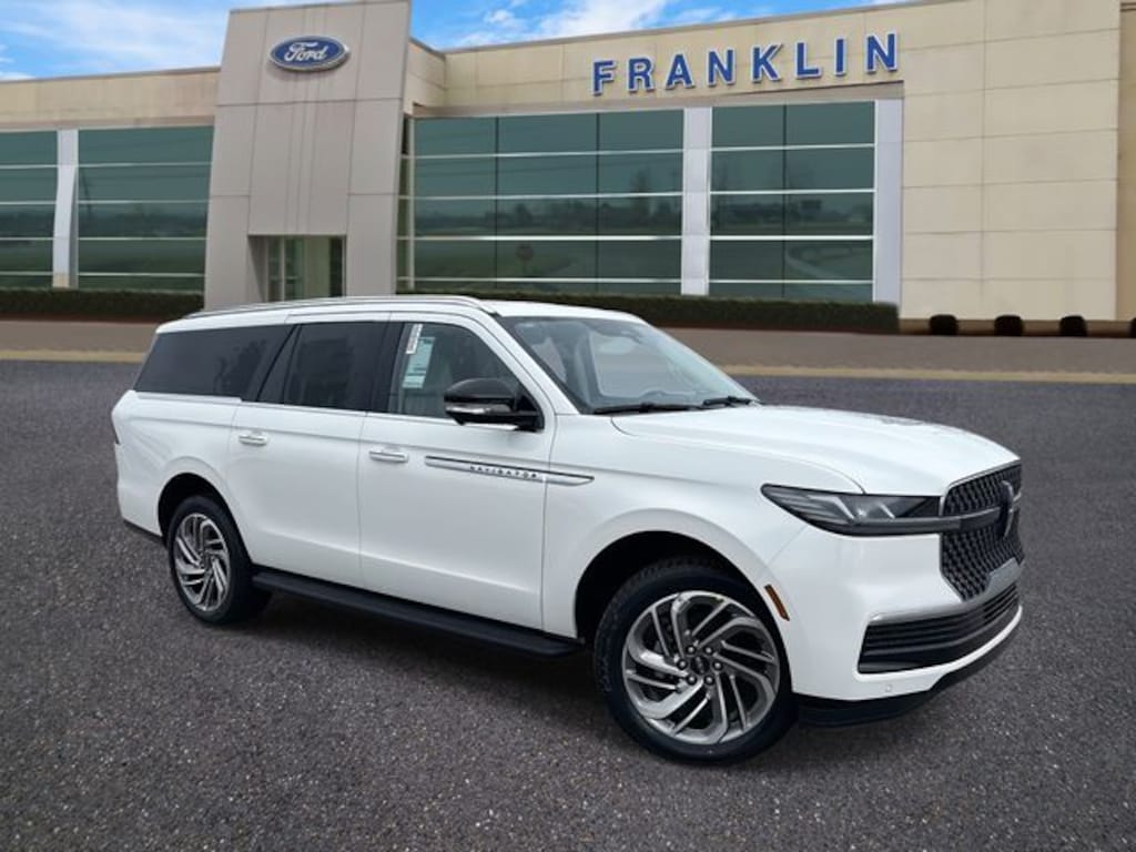 THIS VEHICLE INCLUDES THE FOLLOWING FEATURES AND OPTIONS: Equipment Group 100A (Auto Heated/Ventilated Lincoln Soft-Touch Captain's Chairs, BlueCruise Equipped (4-Years Included), Lincoln App, Lincoln Digital Experience, Radio: Revel Audio System with Satellite/AM/FM Stereo, SiriusXM with 360L (3 Months Trial), and Wheels: 22" Dark Tarnished Aluminum), Lincoln Connectivity Package (4-Years Included), Lincoln Security Package, Navigator L Premiere, 4D Sport Utility, 3.5L V6, 10-Speed Automatic, 4WD, Pristine White Metallic Tri-Coat, Medium Light Space Gray w/Auto Heated/Ventilated Premium Leather Captain's Chairs, Navigation system: Connected Navigation (1-year trial), 14 Speakers, 3rd row seats: split-bench, 4-Wheel Disc Brakes, ABS brakes, Adaptive suspension, Air Conditioning, Alloy wheels, AM/FM radio: SiriusXM with 360L, Apple CarPlay/Android Auto, Audio memory, Auto High-beam Headlights, Auto Start-Stop Technology, Auto tilt-away steering wheel, Auto-dimming door mirrors, Auto-dimming Rear-View mirror, Auto-leveling suspension, Automatic temperature control, Brake assist, Bumpers: body-color, Compass, Delay-off headlights, Driver door bin, Driver vanity mirror, Driver's Seat Mounted Armrest, Dual front impact airbags, Dual front side impact airbags, Electronic Stability Control, Emergency communication system: 911 Assist, Exterior Parking Camera Rear, Four wheel independent suspension, Front anti-roll bar, Front Bucket Seats, Front dual zone A/C, Front reading lights, Fully automatic headlights, Garage door transmitter, Heated door mirrors, Heated front seats, Heated rear seats, Heated steering wheel, HVAC memory, Illuminated entry, Leather steering wheel, Low tire pressure warning, Memory seat, Occupant sensing airbag, Outside temperature display, Overhead airbag, Overhead console, Panic alarm, Passenger door bin, Passenger seat mounted armrest, Passenger vanity mirror, Power adjustable rear head restraints, Power door mirrors, Power driver seat, Power passenger seat, Power steering, Power windows, Radio data system, Rain sensing wipers, Rear air conditioning, Rear anti-roll bar, Rear audio controls, Rear reading lights, Rear window defroster, Rear window wiper, Reclining 3rd row seat, Remote keyless entry, Security system, Speed control, Speed-sensing steering, Speed-Sensitive Wipers, Split folding rear seat, Spoiler, Steering wheel memory, Steering wheel mounted audio controls, Tachometer, Telescoping steering wheel, Tilt steering wheel, Traction control, Trip computer, Turn signal indicator mirrors, Variably intermittent wipers, and Ventilated front seats.