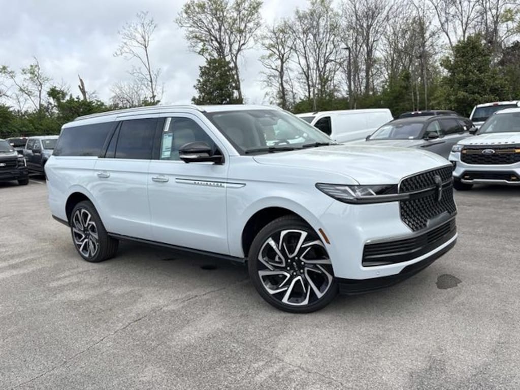 THIS VEHICLE INCLUDES THE FOLLOWING FEATURES AND OPTIONS: Equipment Group 202A Reserve II (Auto Heated/Ventilated Premium Leather Captain's Chairs, BlueCruise Equipped (4-Years Included), Lincoln App, Lincoln Digital Experience, Radio: Revel Ultima 3D Audio System, SiriusXM with 360L (3 Months Trial), and Wheels: 22" Dark Tarnished Aluminum), Heavy-Duty Trailer Tow Package (26mm Engine Radiator and Trailer Brake Controller), Lincoln Connectivity Package (4-Years Included), Lincoln Security Package, Navigator L Reserve, 4D Sport Utility, 3.5L V6, 10-Speed Automatic, 4WD, Crystal White Metallic Clearcoat, Med Lt Space Gry Auto Hea Leather, Navigation system: Connected Navigation (1-year trial), Power moonroof: Panoramic Vista Roof, 28 Speakers, 3rd row seats: split-bench, 4-Wheel Disc Brakes, ABS brakes, Adaptive suspension, Air Conditioning, Alloy wheels, AM/FM radio: SiriusXM with 360L, Apple CarPlay/Android Auto, Audio memory, Auto High-beam Headlights, Auto Start-Stop Technology, Auto tilt-away steering wheel, Auto-dimming door mirrors, Auto-dimming Rear-View mirror, Auto-leveling suspension, Automatic temperature control, Brake assist, Bumpers: body-color, Compass, Delay-off headlights, Driver door bin, Driver vanity mirror, Driver's Seat Mounted Armrest, Dual front impact airbags, Dual front side impact airbags, Electronic Stability Control, Emergency communication system: 911 Assist, Exterior Parking Camera Rear, Four wheel independent suspension, Front anti-roll bar, Front Bucket Seats, Front dual zone A/C, Front reading lights, Fully automatic headlights, Garage door transmitter, Heated door mirrors, Heated front seats, Heated rear seats, Heated steering wheel, HVAC memory, Illuminated entry, Leather steering wheel, Low tire pressure warning, Memory seat, Occupant sensing airbag, Outside temperature display, Overhead airbag, Overhead console, Panic alarm, Passenger door bin, Passenger seat mounted armrest, Passenger vanity mirror, Power adjustable rear head restraints, Power door mirrors, Power driver seat, Power passenger seat, Power steering, Power windows, Radio data system, Rain sensing wipers, Rear air conditioning, Rear anti-roll bar, Rear audio controls, Rear reading lights, Rear window defroster, Rear window wiper, Reclining 3rd row seat, Remote keyless entry, Security system, Speed control, Speed-sensing steering, Speed-Sensitive Wipers, Split folding rear seat, Spoiler, Steering wheel memory, Steering wheel mounted audio controls, Tachometer, Telescoping steering wheel, Tilt steering wheel, Traction control, Trip computer, Turn signal indicator mirrors, Variably intermittent wipers, and Ventilated front seats.