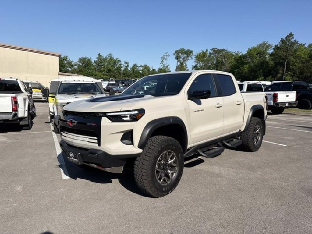 THIS VEHICLE INCLUDES THE FOLLOWING FEATURES AND OPTIONS: Preferred Equipment Group 4ZR (Chevy Safety Assist, Automatic Emergency Braking, Following Distance Indicator, Forward Collision Alert, Front Pedestrian and Bicyclist Braking, IntelliBeam Automatic High Beam on/Off, and Lane Keep Assist with Lane Departure Warning), Technology Package (Adaptive Cruise Control, Bose Premium 7-Speaker Audio System Feature, HD Surround Vision, and Rear Pedestrian Alert), ZR2 Off-Road Package, Colorado ZR2, 4D Crew Cab, 2.7L I4 Turbocharged DOHC 16V LEV3-ULEV50 310hp, 8-Speed Automatic, 4WD, White Sands, Jet Black/Artemis w/Perforated Leather-Appointed Seat Trim, Navigation System, 3.42 Rear Axle Ratio, 4-Way Manual Passenger Seat Adjuster, 4-Wheel Disc Brakes, 6 Speakers, 6-Speaker Audio System Feature, 8-Way Power Driver Seat Adjuster, ABS brakes, Air Conditioning, Alloy wheels, AM/FM radio: SiriusXM with 360L, Apple CarPlay/Android Auto, Auto High-beam Headlights, Auto-dimming Rear-View mirror, Automatic temperature control, Brake assist, Compass, Delay-off headlights, Driver and Front Passenger Heated Seats, Driver and Front Passenger Ventilated Seats, Driver door bin, Driver Memory Settings, Driver Seatback Map Pocket, Driver vanity mirror, Dual front impact airbags, Dual front side impact airbags, Electronic Stability Control, Emergency communication system: OnStar, Front anti-roll bar, Front Bucket Seats, Front Center Armrest, Front dual zone A/C, Front fog lights, Front License Plate Kit, Front Passenger Seatback Map Pocket, Front reading lights, Front wheel independent suspension, Heated door mirrors, Heated front seats, Heated steering wheel, Illuminated entry, Low tire pressure warning, Memory seat, Occupant sensing airbag, Outside temperature display, Overhead airbag, Overhead console, Panic alarm, Passenger door bin, Passenger vanity mirror, Perforated Leather-Appointed Seat Trim, Power door mirrors, Power Driver Lumbar Control Seat Adjuster, Power driver seat, Power steering, Power windows, Radio data system, Radio: 11.3" Diagonal Advanced Color LCD Display, Rear reading lights, Rear seat center armrest, Rear step bumper, Rear window defroster, Remote keyless entry, Security system, SiriusXM with 360L Trial Subscription, Speed control, Speed-sensing steering, Split folding rear seat, Steering Wheel Mounted Audio Controls, Steering wheel mounted audio controls, Tachometer, Telescoping steering wheel, Tilt steering wheel, Traction control, Trip computer, Variably intermittent wipers, Ventilated front seats, Wheels: 17" x 8" Graphite and Oxide Gold Aluminum, and Wireless Phone Projection.